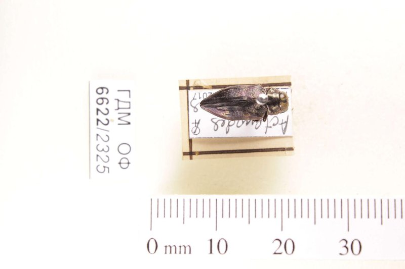 Сухое насекомое. Златка. Actenodes fulminatus (Schönherr, 1817). Классификация: Членистоногие Arthropoda, Насекомые Insecta, Жуки Coleoptera, Златки Buprestidae