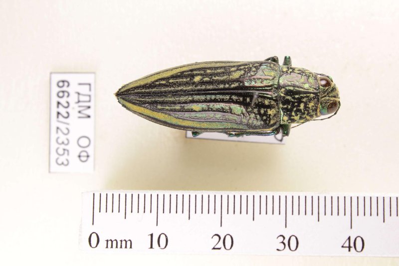 Сухое насекомое. Златка. Pseudotaenia salamandra (Thomson, 1879). Классификация: Членистоногие Arthropoda, Насекомые Insecta, Жуки Coleoptera, Златки Buprestidae