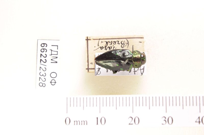 Сухое насекомое. Златка. Actenodes obscuripennis (Gory et Laporte, 1837). Классификация: Членистоногие Arthropoda, Насекомые Insecta, Жуки Coleoptera, Златки Buprestidae