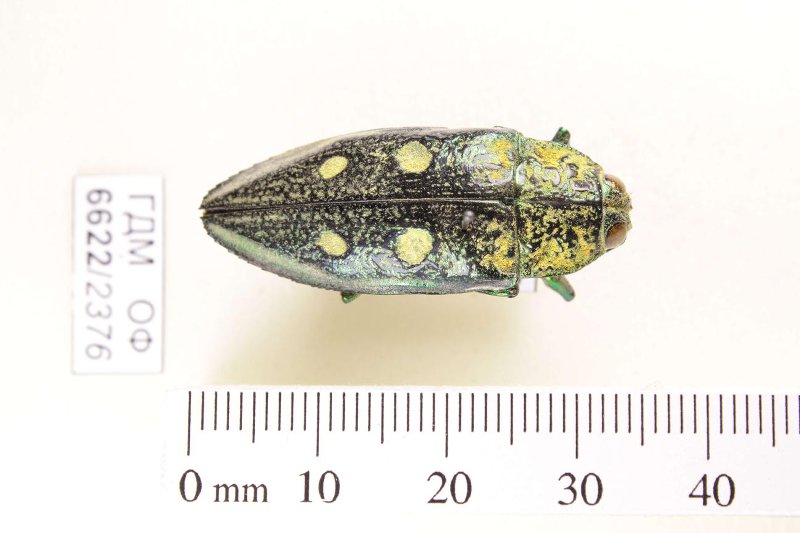 Сухое насекомое. Златка. Austrophorella quadrisignata (Saunders, 1872). Классификация: Членистоногие Arthropoda, Насекомые Insecta, Жуки Coleoptera, Златки Buprestidae