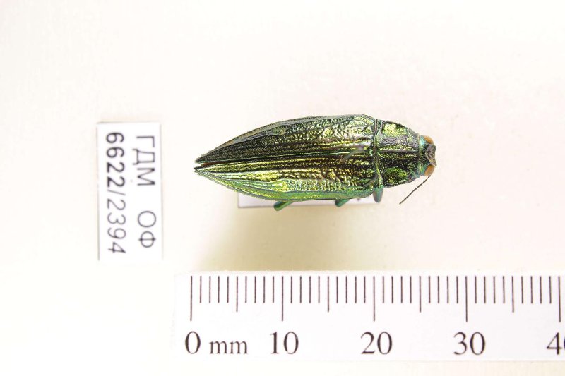 Сухое насекомое. Златка. Chrysodema radians (Guérin-Ménéville, 1830). Классификация: Членистоногие Arthropoda, Насекомые Insecta, Жуки Coleoptera, Златки Buprestidae