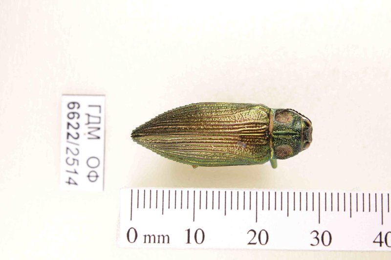 Сухое насекомое. Златка. Chrysodema radians (Guérin-Ménéville, 1830). Классификация: Членистоногие Arthropoda, Насекомые Insecta, Жуки Coleoptera, Златки Buprestidae