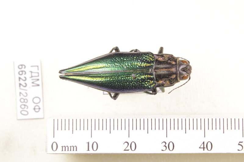 Сухое насекомое. Златка. Cyphogastra farinosa (Fabricius, 1775). Классификация: Членистоногие Arthropoda, Насекомые Insecta, Жуки Coleoptera, Златки Buprestidae