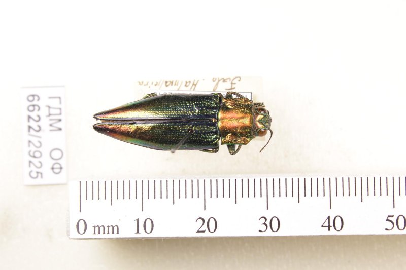 Сухое насекомое. Златка. Cyphogastra satrapa (Schönherr, 1817). Классификация: Членистоногие Arthropoda, Насекомые Insecta, Жуки Coleoptera, Златки Buprestidae