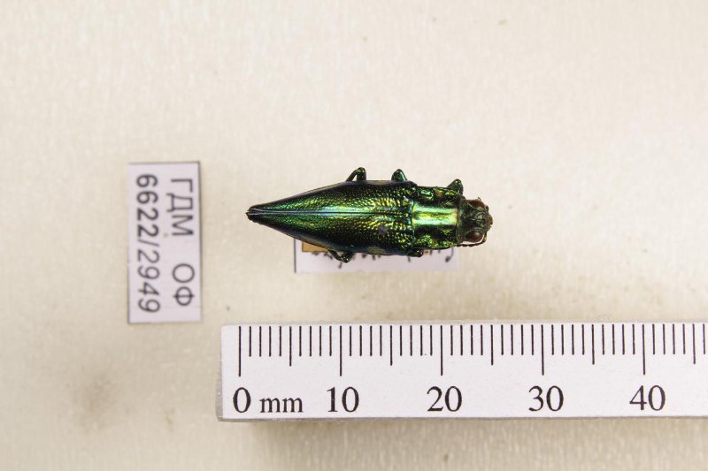 Сухое насекомое. Златка. Cyphogastra foveicollis (Boisduval, 1835). Классификация: Членистоногие Arthropoda, Насекомые Insecta, Жуки Coleoptera, Златки Buprestidae