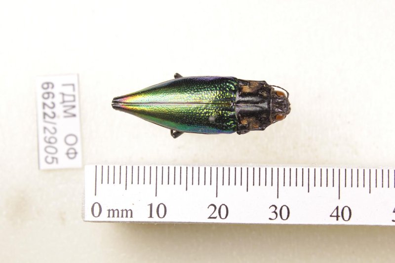 Сухое насекомое. Златка. Cyphogastra semipurpurea (Laporte et Gory, 1835). Классификация: Членистоногие Arthropoda, Насекомые Insecta, Жуки Coleoptera, Златки Buprestidae