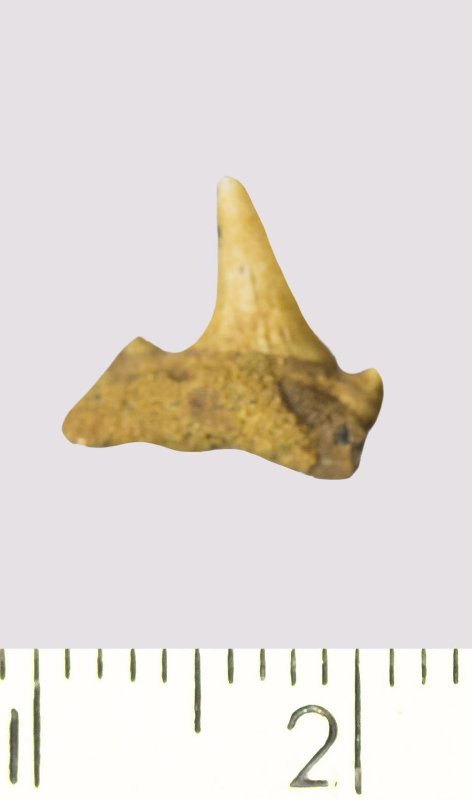 Зуб. Акула. Lamniformes gen. et sp. indet. Классификация: Хордовые Chordata, Позвоночные Vertebrata, Хрящевые рыбы Chondrichthyes, Пластиножаберные Elasmobranchii
