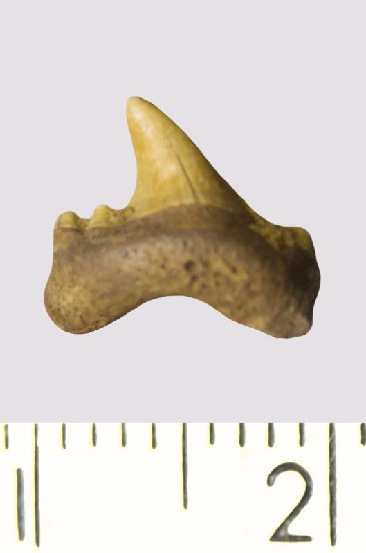 Зуб. Акула. Lamniformes gen. et sp. indet. Классификация: Хордовые Chordata, Позвоночные Vertebrata, Хрящевые рыбы Chondrichthyes, Пластиножаберные Elasmobranchii