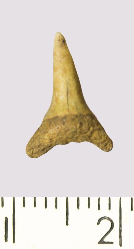 Зуб. Акула. Odontaspis venusta (Leriche, 1929). Классификация: Хордовые Chordata, Позвоночные Vertebrata, Хрящевые рыбы Chondrichthyes, Пластиножаберные Elasmobranchii