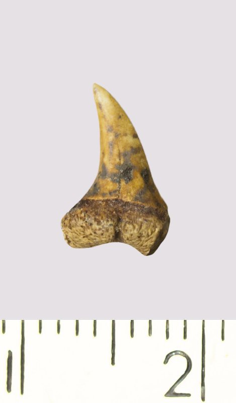 Зуб. Акула. Odontaspis venusta (Leriche, 1929). Классификация: Хордовые Chordata, Позвоночные Vertebrata, Хрящевые рыбы Chondrichthyes, Пластиножаберные Elasmobranchii