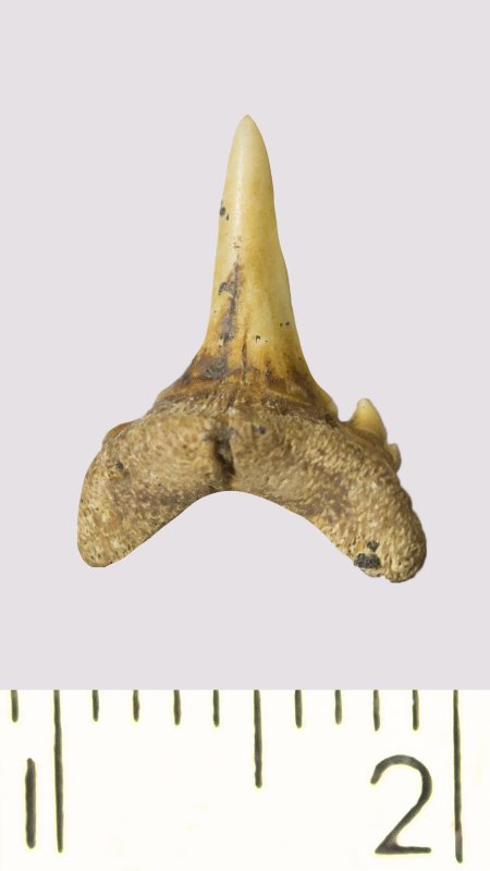 Зуб. Акула. Odontaspis venusta (Leriche, 1929). Классификация: Хордовые Chordata, Позвоночные Vertebrata, Хрящевые рыбы Chondrichthyes, Пластиножаберные Elasmobranchii