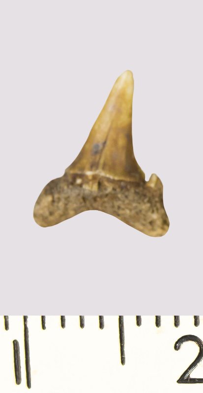 Зуб. Акула. Odontaspis venusta (Leriche, 1929). Классификация: Хордовые Chordata, Позвоночные Vertebrata, Хрящевые рыбы Chondrichthyes, Пластиножаберные Elasmobranchii