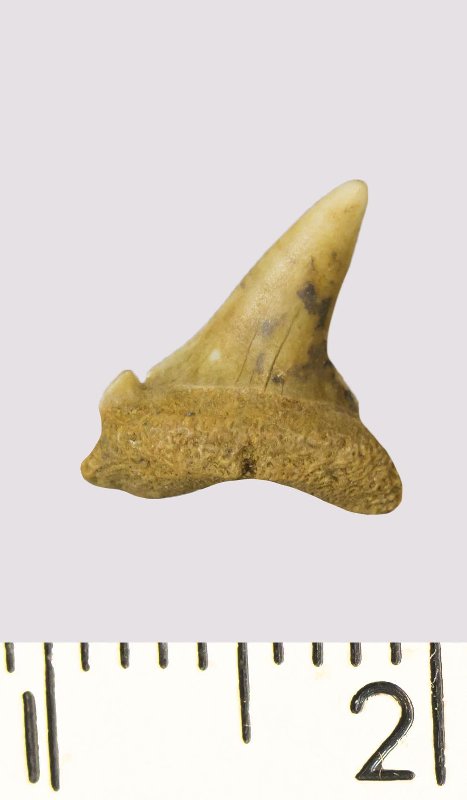 Зуб. Акула. Odontaspis venusta (Leriche, 1929). Классификация: Хордовые Chordata, Позвоночные Vertebrata, Хрящевые рыбы Chondrichthyes, Пластиножаберные Elasmobranchii