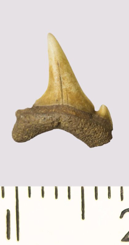 Зуб. Акула. Odontaspis venusta (Leriche, 1929). Классификация: Хордовые Chordata, Позвоночные Vertebrata, Хрящевые рыбы Chondrichthyes, Пластиножаберные Elasmobranchii