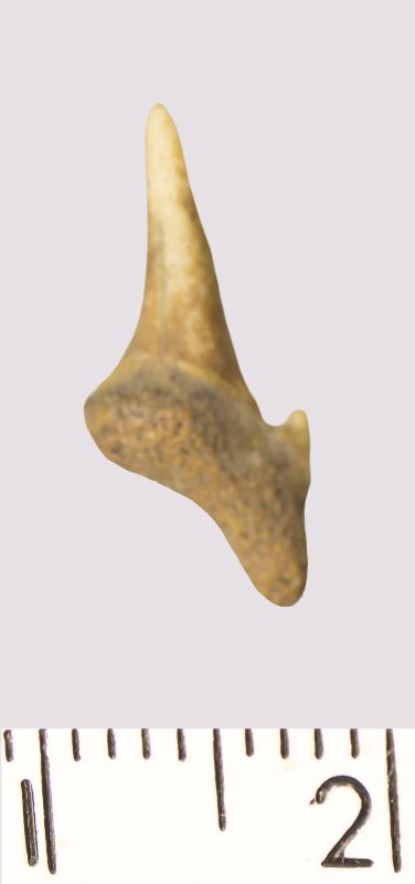 Зуб. Акула. Odontaspis macrorhiza (Cope) Leriche, 1902. Классификация: Хордовые Chordata, Позвоночные Vertebrata, Хрящевые рыбы Chondrichthyes, Пластиножаберные Elasmobranchii