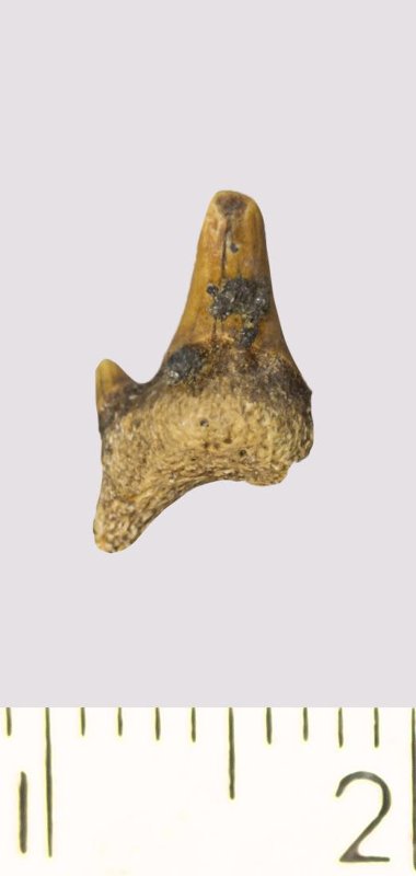 Зуб. Акула. Odontaspis macrorhiza (Cope) Leriche, 1902. Классификация: Хордовые Chordata, Позвоночные Vertebrata, Хрящевые рыбы Chondrichthyes, Пластиножаберные Elasmobranchii