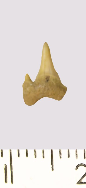 Зуб. Акула. Odontaspis macrorhiza (Cope) Leriche, 1902. Классификация: Хордовые Chordata, Позвоночные Vertebrata, Хрящевые рыбы Chondrichthyes, Пластиножаберные Elasmobranchii