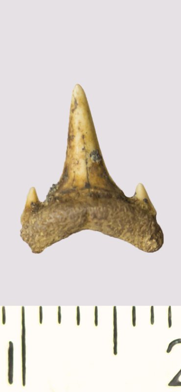 Зуб. Акула. Odontaspis venusta (Leriche, 1929). Классификация: Хордовые Chordata, Позвоночные Vertebrata, Хрящевые рыбы Chondrichthyes, Пластиножаберные Elasmobranchii