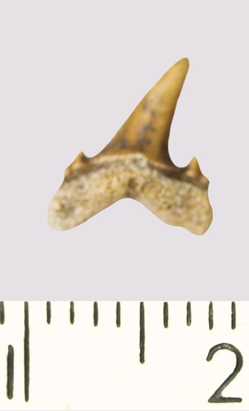 Зуб. Акула. Odontaspis venusta (Leriche, 1929). Классификация: Хордовые Chordata, Позвоночные Vertebrata, Хрящевые рыбы Chondrichthyes, Пластиножаберные Elasmobranchii
