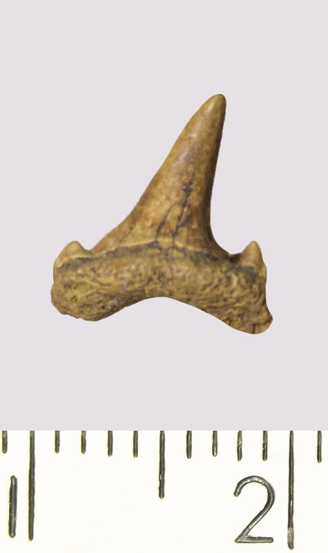 Зуб. Акула. Odontaspis venusta (Leriche, 1929). Классификация: Хордовые Chordata, Позвоночные Vertebrata, Хрящевые рыбы Chondrichthyes, Пластиножаберные Elasmobranchii
