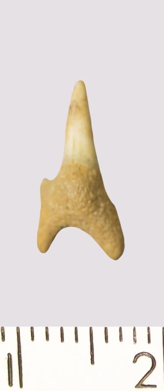 Зуб. Акула. Odontaspis macrorhiza (Cope) Leriche, 1902. Классификация: Хордовые Chordata, Позвоночные Vertebrata, Хрящевые рыбы Chondrichthyes, Пластиножаберные Elasmobranchii