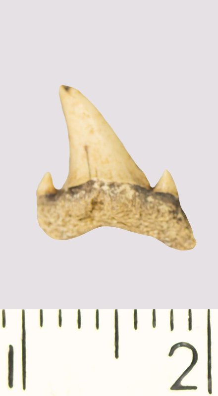 Зуб. Акула. Odontaspis venusta (Leriche, 1929). Классификация: Хордовые Chordata, Позвоночные Vertebrata, Хрящевые рыбы Chondrichthyes, Пластиножаберные Elasmobranchii