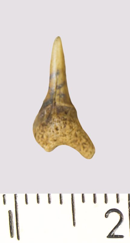 Зуб. Акула. Odontaspis macrorhiza (Cope) Leriche, 1902. Классификация: Хордовые Chordata, Позвоночные Vertebrata, Хрящевые рыбы Chondrichthyes, Пластиножаберные Elasmobranchii