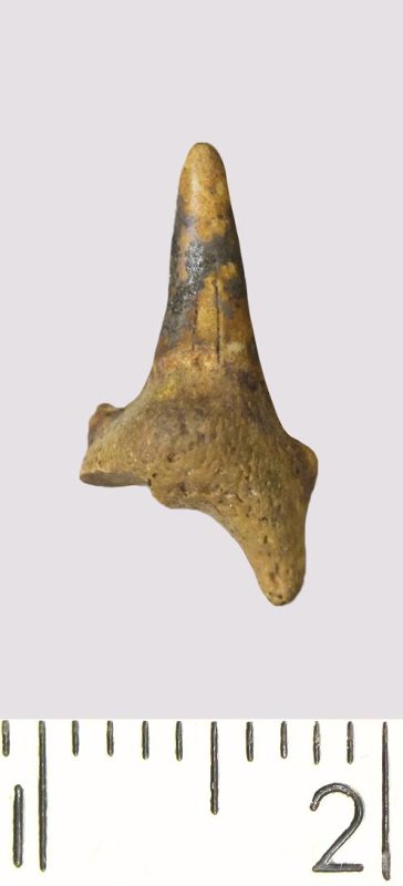 Зуб. Акула. Odontaspis macrorhiza (Cope) Leriche, 1902. Классификация: Хордовые Chordata, Позвоночные Vertebrata, Хрящевые рыбы Chondrichthyes, Пластиножаберные Elasmobranchii