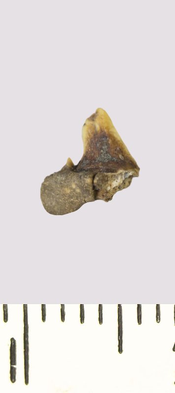 Зуб. Акула. Scapanorhynchus rhaphiodon Agassiz, 1843. Классификация: Хордовые Chordata, Позвоночные Vertebrata, Хрящевые рыбы Chondrichthyes, Пластиножаберные Elasmobranchii