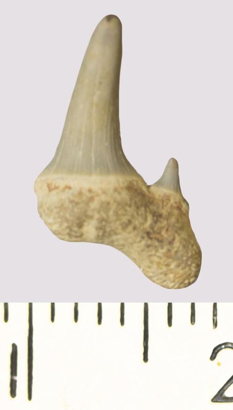 Зуб. Акула. Scapanorhynchus rhaphiodon Agassiz, 1843. Классификация: Хордовые Chordata, Позвоночные Vertebrata, Хрящевые рыбы Chondrichthyes, Пластиножаберные Elasmobranchii