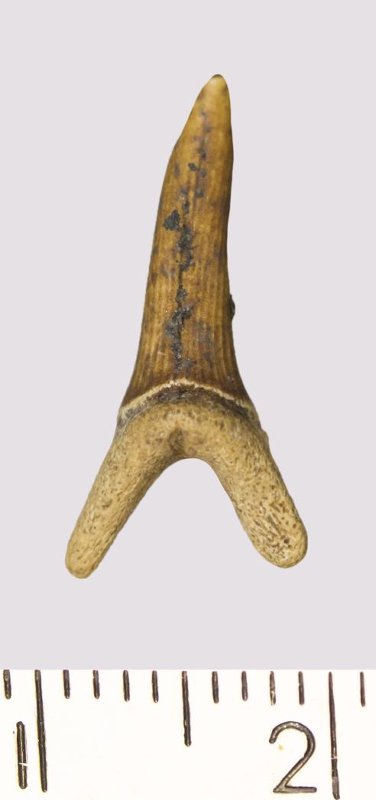 Зуб. Акула. Scapanorhynchus rhaphiodon Agassiz, 1843. Классификация: Хордовые Chordata, Позвоночные Vertebrata, Хрящевые рыбы Chondrichthyes, Пластиножаберные Elasmobranchii