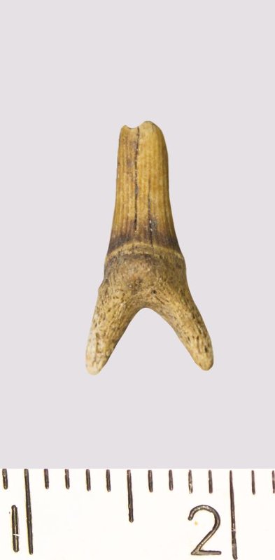 Зуб. Акула. Scapanorhynchus rhaphiodon Agassiz, 1843. Классификация: Хордовые Chordata, Позвоночные Vertebrata, Хрящевые рыбы Chondrichthyes, Пластиножаберные Elasmobranchii