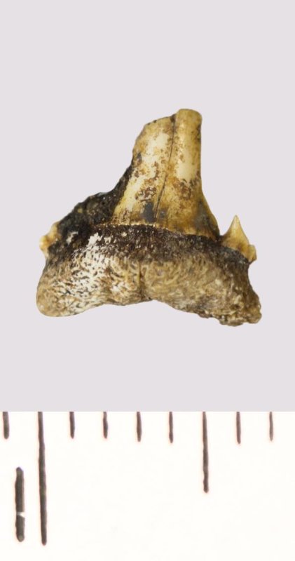 Зуб. Акула. Scapanorhynchus rhaphiodon Agassiz, 1843. Классификация: Хордовые Chordata, Позвоночные Vertebrata, Хрящевые рыбы Chondrichthyes, Пластиножаберные Elasmobranchii