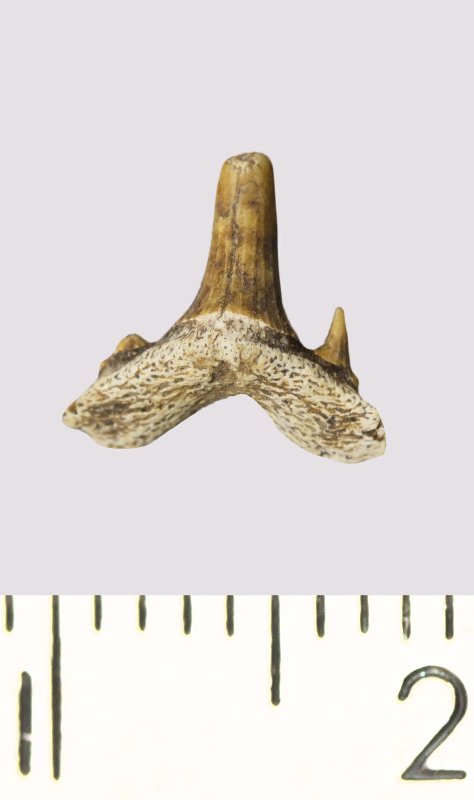 Зуб. Акула. Scapanorhynchus rhaphiodon Agassiz, 1843. Классификация: Хордовые Chordata, Позвоночные Vertebrata, Хрящевые рыбы Chondrichthyes, Пластиножаберные Elasmobranchii