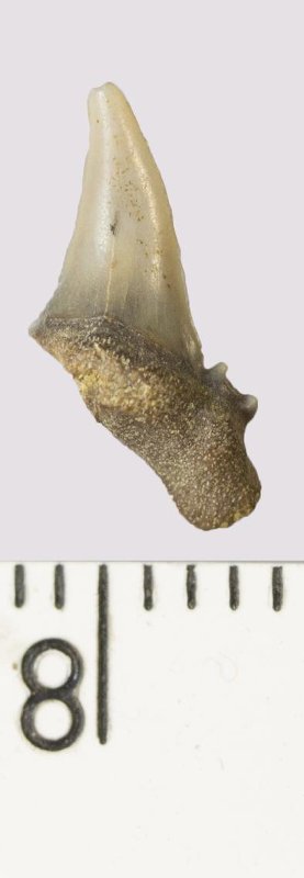 Зуб. Акула. Odontaspis venusta (Leriche, 1929). Классификация: Хордовые Chordata, Позвоночные Vertebrata, Хрящевые рыбы Chondrichthyes, Пластиножаберные Elasmobranchii