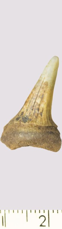 Зуб. Акула. Scapanorhynchus gigas Woodward, 1889. Классификация: Хордовые Chordata, Позвоночные Vertebrata, Хрящевые рыбы Chondrichthyes, Пластиножаберные Elasmobranchii