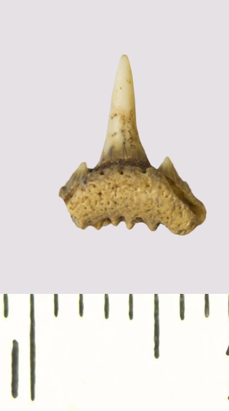 Зуб. Акула. Synechodus sp. Классификация: Хордовые Chordata, Позвоночные Vertebrata, Хрящевые рыбы Chondrichthyes, Пластиножаберные Elasmobranchii