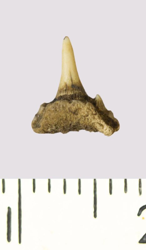 Зуб. Акула. Synechodus sp. Классификация: Хордовые Chordata, Позвоночные Vertebrata, Хрящевые рыбы Chondrichthyes, Пластиножаберные Elasmobranchii