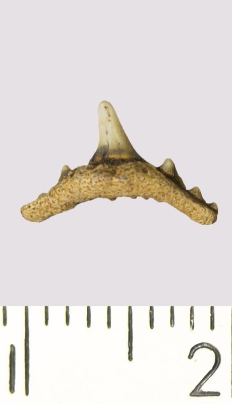 Зуб. Акула. Synechodus sp. Классификация: Хордовые Chordata, Позвоночные Vertebrata, Хрящевые рыбы Chondrichthyes, Пластиножаберные Elasmobranchii