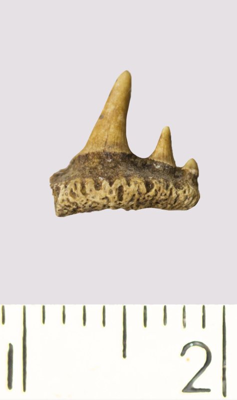 Зуб. Акула. Paraorthacodus sp. Классификация: Хордовые Chordata, Позвоночные Vertebrata, Хрящевые рыбы Chondrichthyes, Пластиножаберные Elasmobranchii