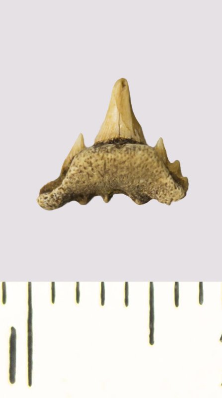 Зуб. Акула. Synechodus sp. Классификация: Хордовые Chordata, Позвоночные Vertebrata, Хрящевые рыбы Chondrichthyes, Пластиножаберные Elasmobranchii