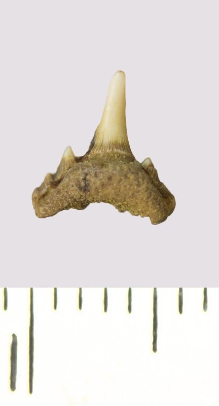 Зуб. Акула. Synechodus sp. Классификация: Хордовые Chordata, Позвоночные Vertebrata, Хрящевые рыбы Chondrichthyes, Пластиножаберные Elasmobranchii