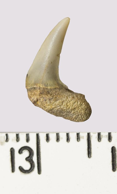 Зуб. Акула. Odontaspis venusta (Leriche, 1929). Классификация: Хордовые Chordata, Позвоночные Vertebrata, Хрящевые рыбы Chondrichthyes, Пластиножаберные Elasmobranchii