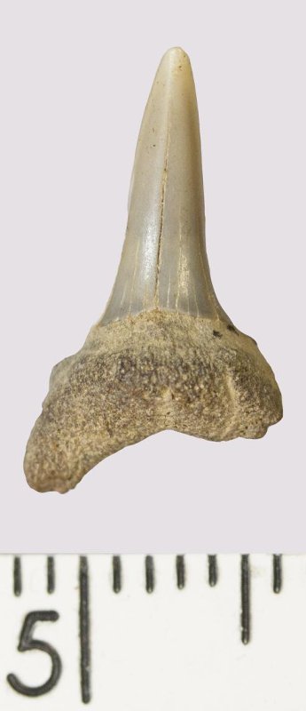 Зуб. Акула. Odontaspis venusta (Leriche, 1929). Классификация: Хордовые Chordata, Позвоночные Vertebrata, Хрящевые рыбы Chondrichthyes, Пластиножаберные Elasmobranchii