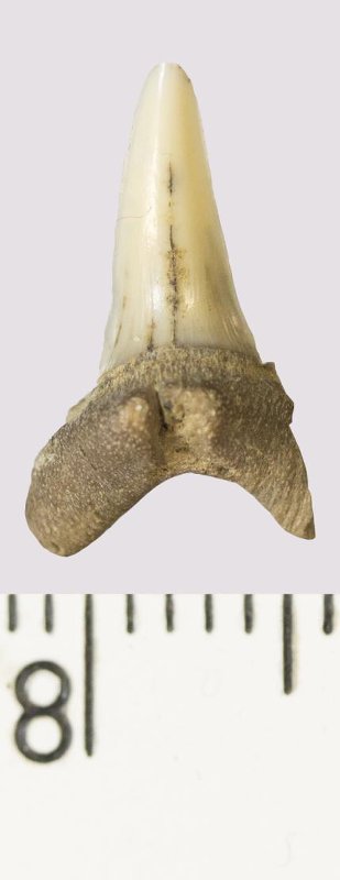 Зуб. Акула. Odontaspis venusta (Leriche, 1929). Классификация: Хордовые Chordata, Позвоночные Vertebrata, Хрящевые рыбы Chondrichthyes, Пластиножаберные Elasmobranchii