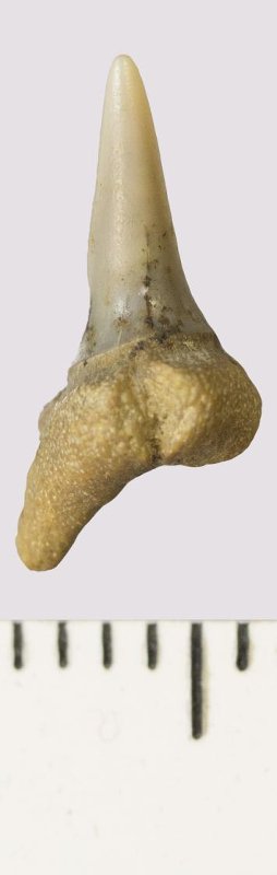 Зуб. Акула. Odontaspis venusta (Leriche, 1929). Классификация: Хордовые Chordata, Позвоночные Vertebrata, Хрящевые рыбы Chondrichthyes, Пластиножаберные Elasmobranchii