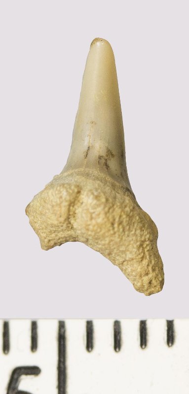 Зуб. Акула. Odontaspis venusta (Leriche, 1929). Классификация: Хордовые Chordata, Позвоночные Vertebrata, Хрящевые рыбы Chondrichthyes, Пластиножаберные Elasmobranchii