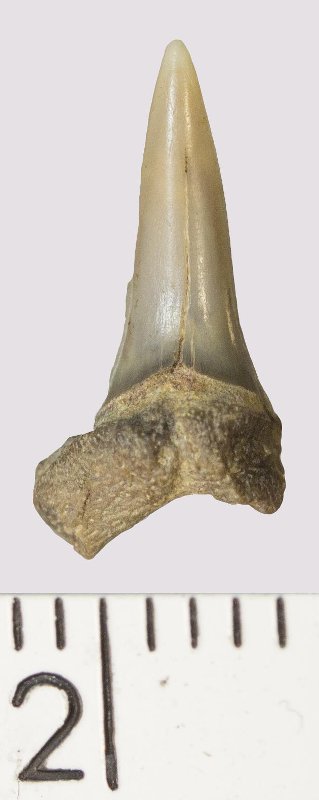 Зуб. Акула. Odontaspis venusta (Leriche, 1929). Классификация: Хордовые Chordata, Позвоночные Vertebrata, Хрящевые рыбы Chondrichthyes, Пластиножаберные Elasmobranchii