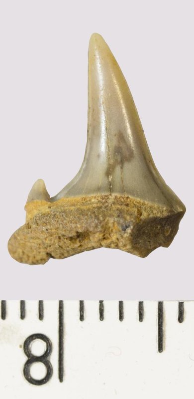 Зуб. Акула. Odontaspis venusta (Leriche, 1929). Классификация: Хордовые Chordata, Позвоночные Vertebrata, Хрящевые рыбы Chondrichthyes, Пластиножаберные Elasmobranchii