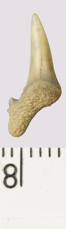 Зуб. Акула. Odontaspis venusta (Leriche, 1929). Классификация: Хордовые Chordata, Позвоночные Vertebrata, Хрящевые рыбы Chondrichthyes, Пластиножаберные Elasmobranchii